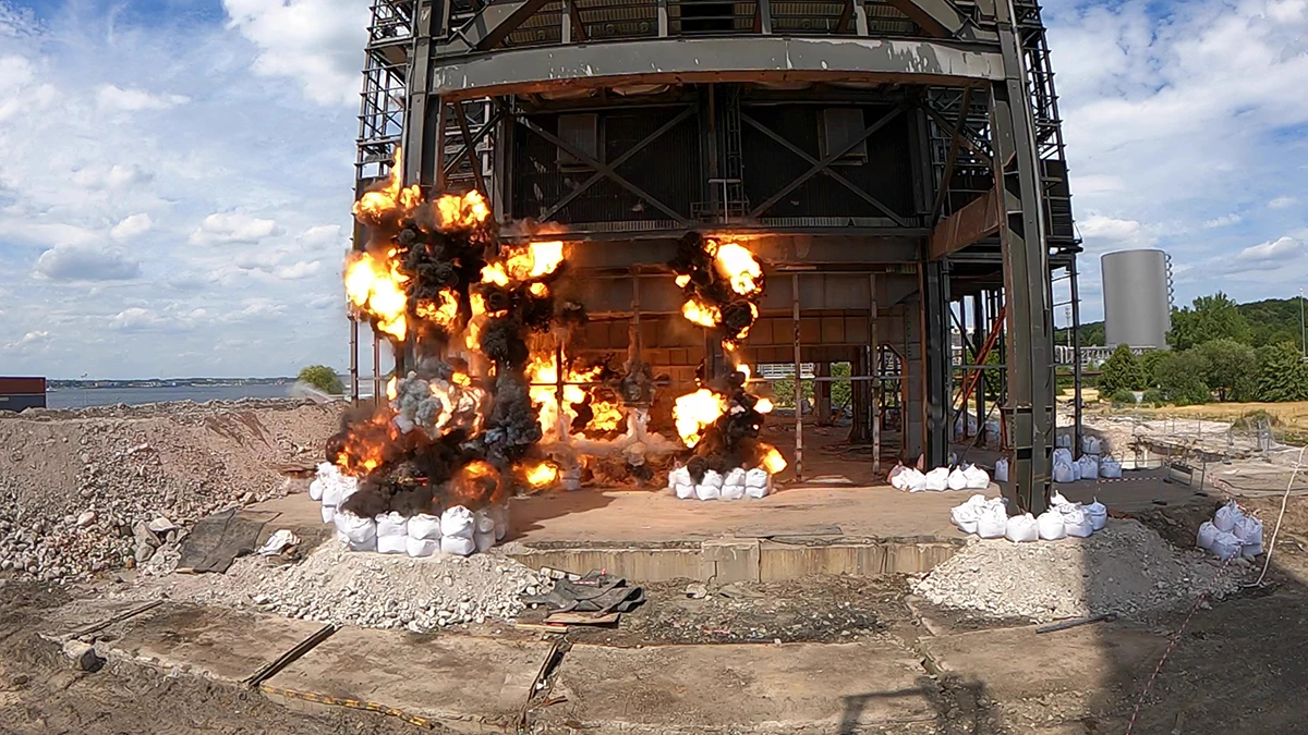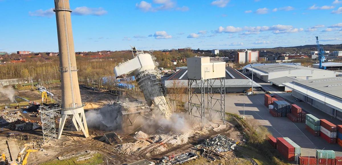 Sprengung Kesselhaus, DeNoX & Schornstein Gemeinschaftskraftwerk Kiel